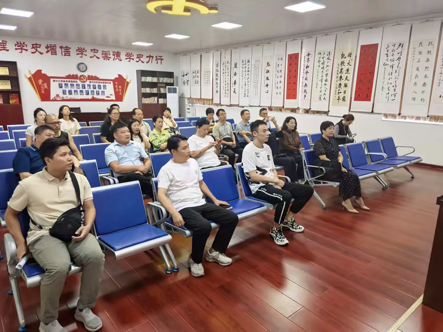 参观完后,涧河街道党工委副书记苗勉龙主持召开座谈会。